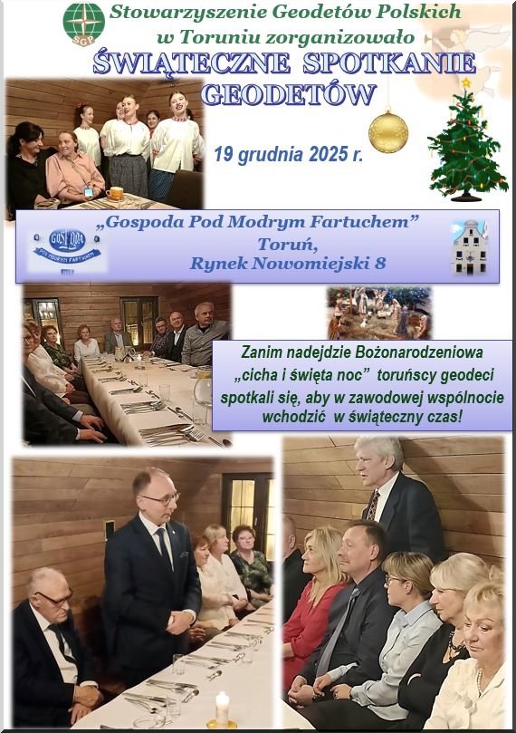 Świąteczne Spotkanie Geodetów w Bydgoszczy 16 grudnia 2023 r. (sobota)